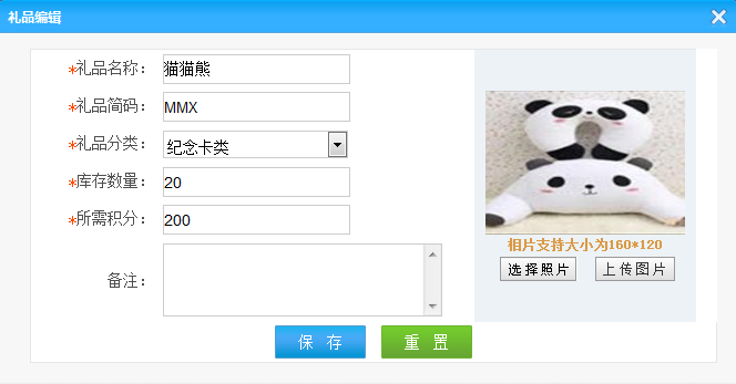 禮品列表:展示系統(tǒng)中所有類別的禮品