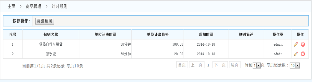 規(guī)則列表:展示系統(tǒng)內設置的所有的規(guī)則 (操作一欄 可以對每條規(guī)則進行修改和刪除 )